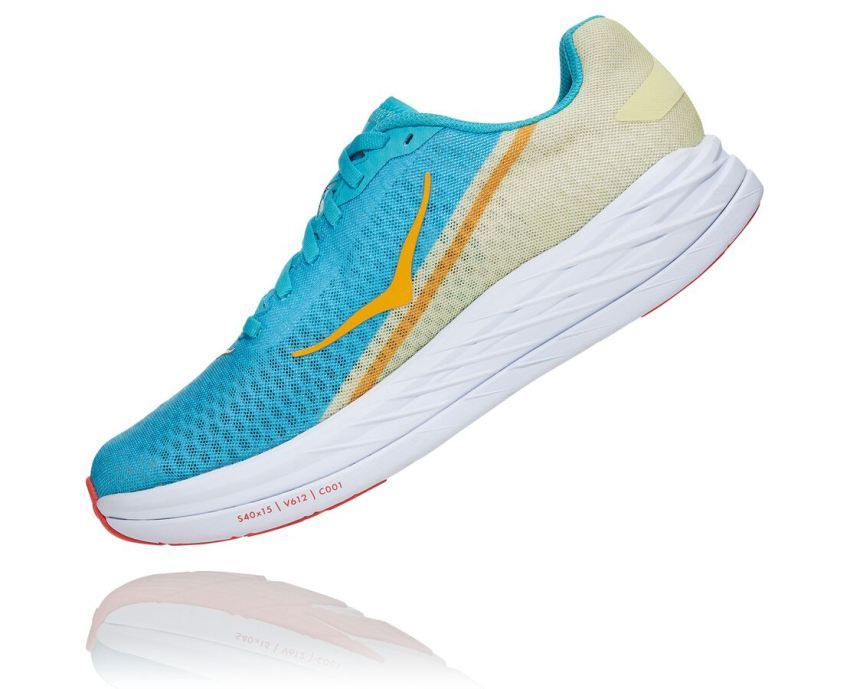 One of the most energetic shoes HOKA has launched to date, the Rocket X is an incredibly lightweight, insanely responsive racer geared for elite athletes. The lightest racing flat in the HOKA lineup, this all-speed shoe is engineered to launch off the line. Primed for shorter distances, the Rocket X utilizes the same responsive carbon fiber plate as the Carbon X, delivering a fast, efficient and propulsive ride. Built for race day, this speed dagger employs the lightest foam in HOKA history, a soft midsole carrier, breathable mesh upper and lightweight, rubberized foam outsole that reduces weight. Speed weaponry at its best, adrenaline will be pumping when lacing up this impossibly fast race flat.