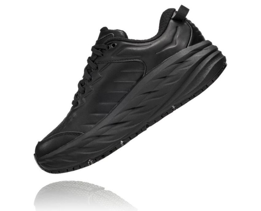 One of the first line extensions of the beloved Bondi family, the new Bondi SR takes the mostcushioned shoe in the HOKA road-shoe lineup and reworks the silhouette to handle the demandsof daily life. Engineered with an EVA midsole for plush, all-day cushioning, this workplace warriorhas been updated with water-resistant leather and a slip-resistant outsole. Boasting a proprietaryoutsole compound tested against industry standards, the Bondi SR features an ultra-grippy, fullground contact rubber that stands up to the service industry and medical field alike.